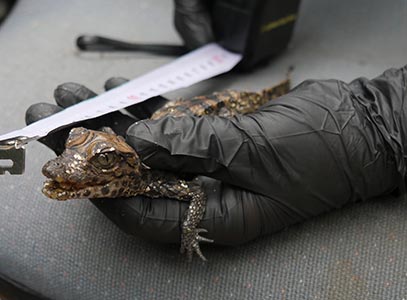 Vor einigen Wochen schlüpften acht kleine Stumpfkrokodile im Darmstädter Zoo Vivarium, wachsen gesund heran und können nun in der Aquarien- und Terrarienhalle des Zoos Vivarium beobachtet werden.