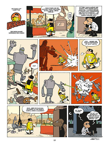 Superhelden-Persiflage als grafisch witziges Spiel mit dem Medium Comic.