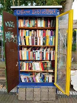 Ausgelesen und weggetan? Andere Bücherratten freuen sich über ausgelesene Lektüre. Diese kann man in einem der Bücherschränke in der Stadt ablegen. Die findet man an vielen Orten in Darmstadt: mal in einer ausgedienten Telefonzelle, dann in einem bunt bemalten Regal oder einer ulkigen Vitrine. Das Tolle daran: Das Angebot der Bücher darin ist einfach faszinierend – man findet von aktuellen Bestsellern über uralte Kochbücher sogar längst vergriffene Ausgaben.